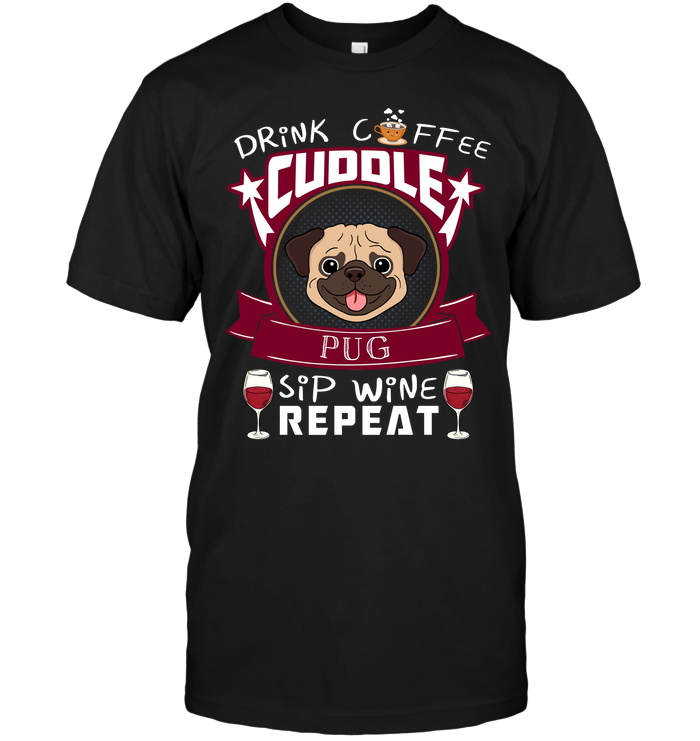 Drink Coffee Cuddle Pug Sip Wine Repeat T Shirts