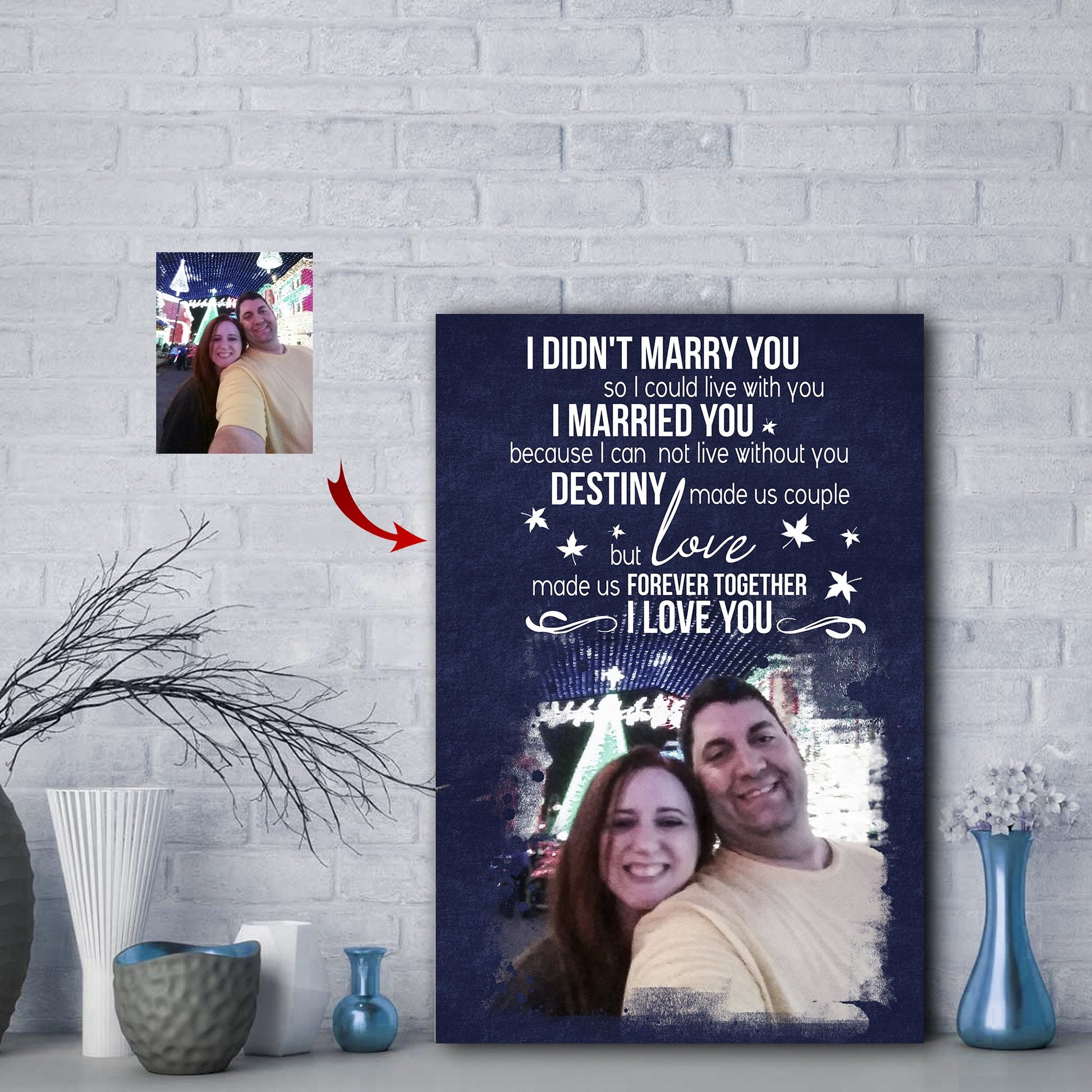 I didn't marry you so I could live with you - I married you because I can not live without you - Destiny made us couple but love made us forever together - I love you canvas print