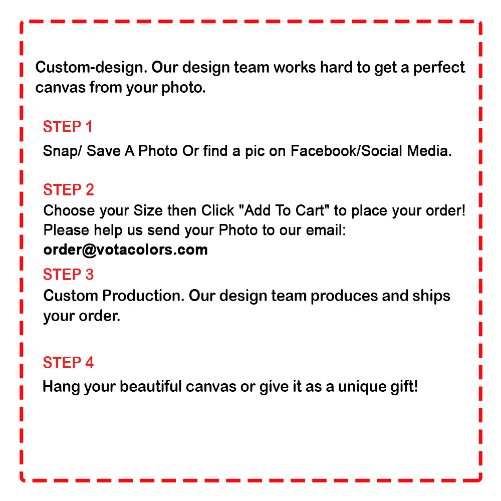 - STEP 2: Choose your Size then Click "Add To Cart" to place your order! Please help us send your Photo to our email: order@votacolors.com